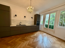 Au rez-de-chaussée : un grand séjour de 46 m2, une cuisine indépendante et un bureau/chambre.