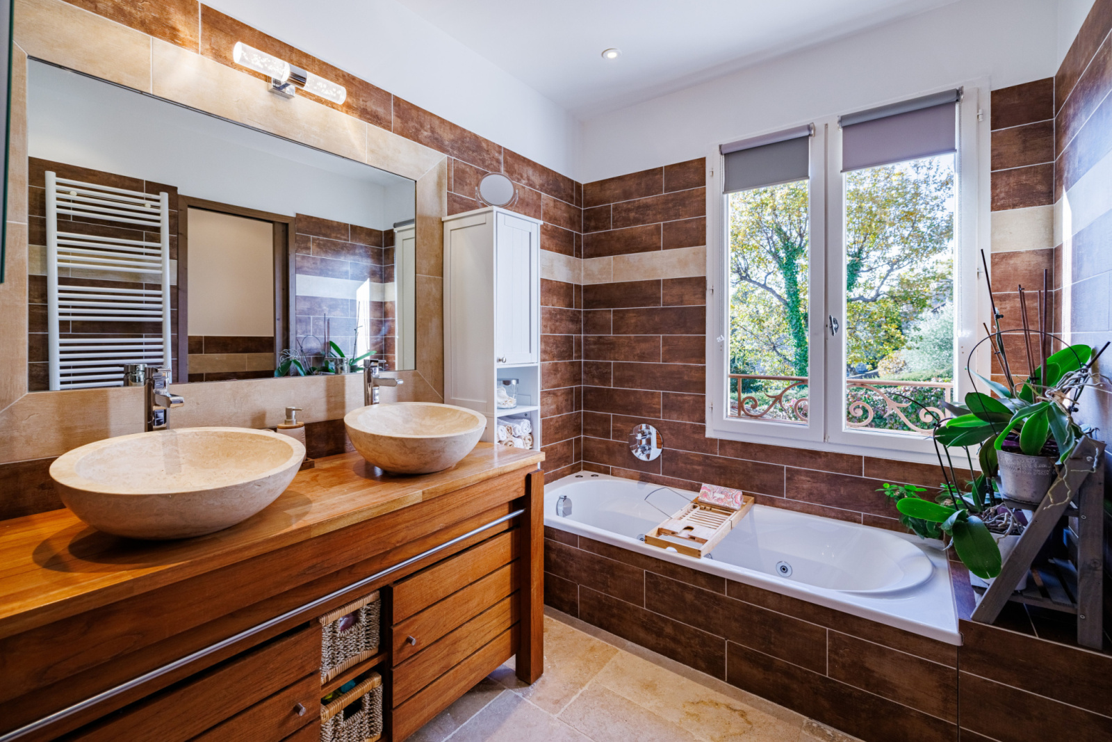 À l’extérieur, le jardin paysager met à l’honneur une superbe piscine privée de 11 x 5 m, véritable invitation à la détente. Un jacuzzi vient parfaire cet espace dédié au bien-être.